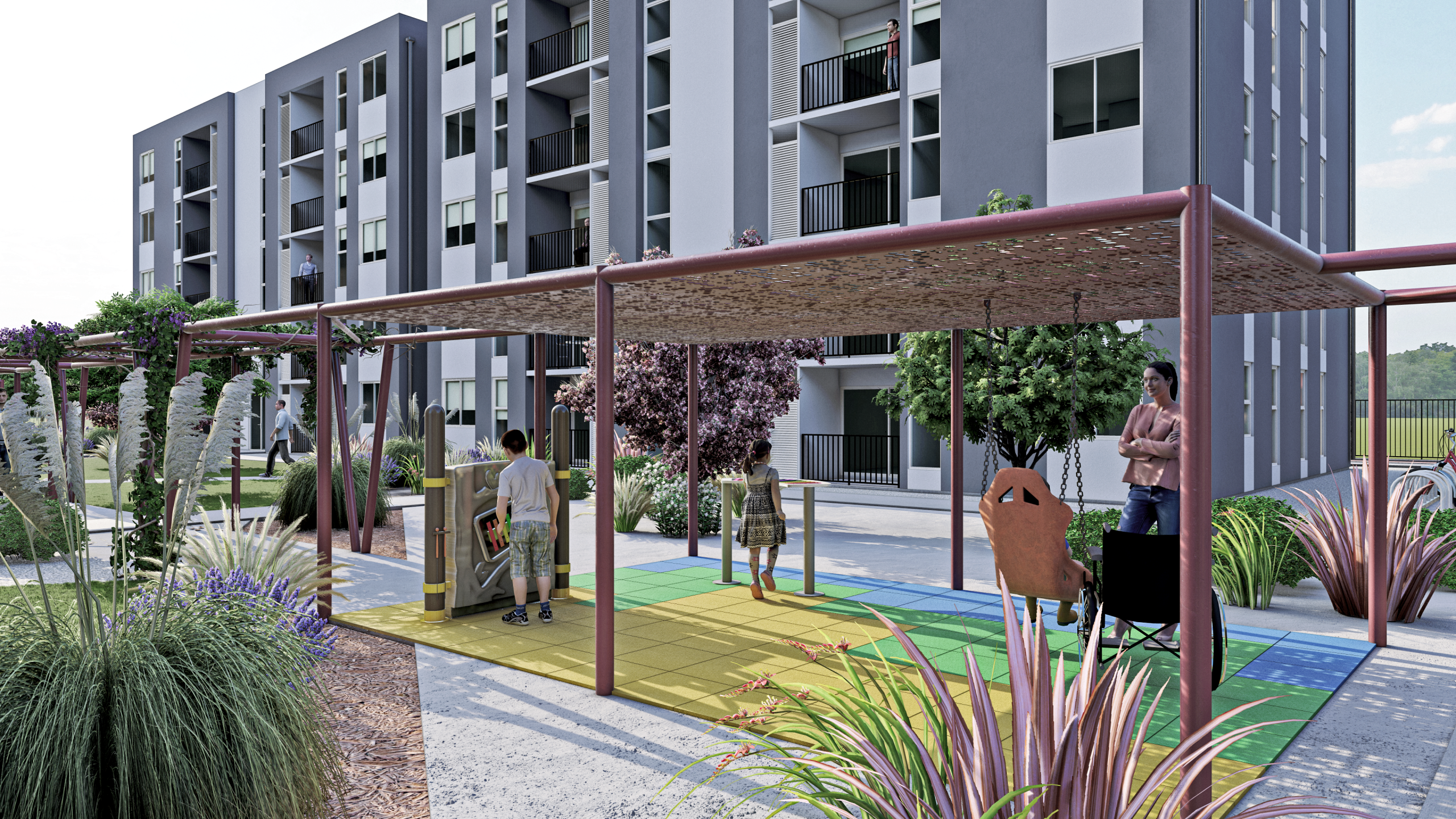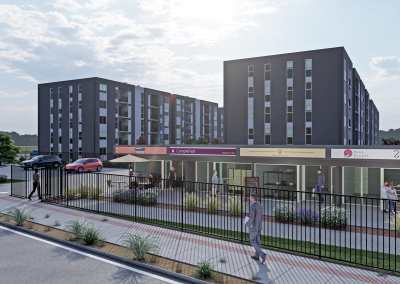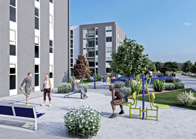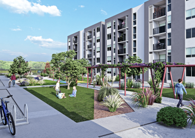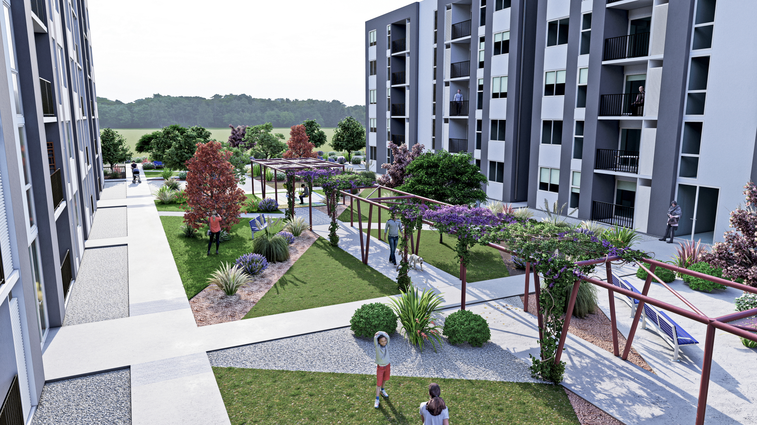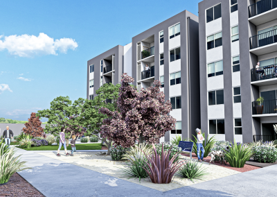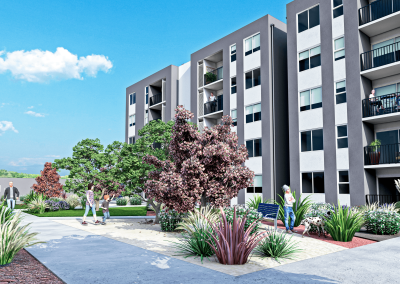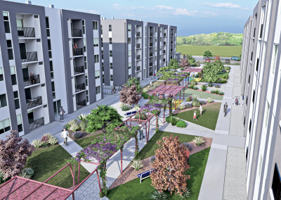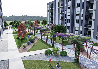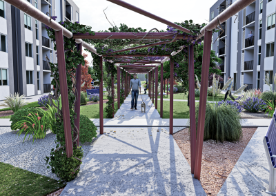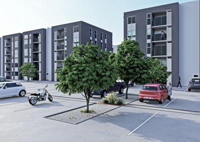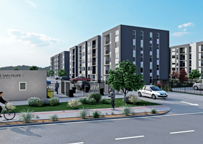 Proyecto consiste en 8 torres habitacionales de 5 pisos, 160 departamentos intermediados por áreas verdes, equipamiento, zona de mascotas, y parrón conectado por un eje central del cual se desprenden diferentes tipos de juegos. 1 local comercial para la comunidad, portería, sala de administración, paisajismo y riego por goteo. 96 bodegas, 160 estacionamientos de uso habitacional, de los cuales 2 son para discapacitados y 12 estacionamientos de uso comercial de los cuales 2 para discapacitados. 82 estacionamientos de bicicletas de uso habitacional y 6 para uso comercial. Cuenta con sistema de eficiencia energética.