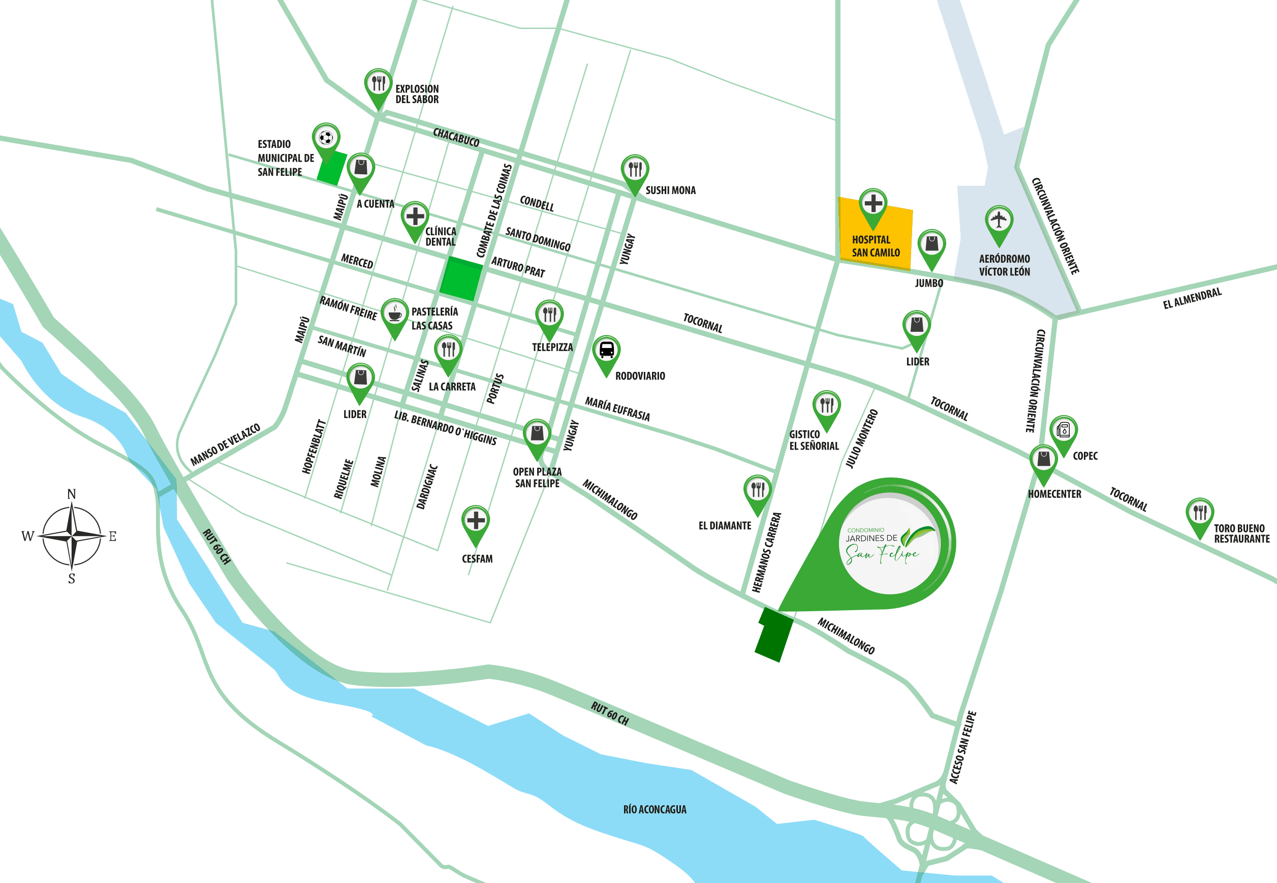 Proyecto Jardines de San Felipe, emplazado en Av. Michimalongo 2140, a la altura de Julio Montero, cuenta con excelente conectividad y a solo minutos del centro de la ciudad. Iluminación Fotovoltaica en exteriores, equipado con máquina de ejercicios, juegos, y una zona especial para mascotas, todo unido por un eje central con un parrón.